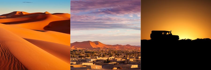 Desde el embarque en Algeciras hasta la llegada a Tánger, recorreremos carreteras secundarias y pistas que nos conducirán hacia la magia de Marrakech, la antigua kasbah de Ait Ben Haddou, los estudios de cine de Ouarzazate, Foum Zguid, el lago Iriki, M’Hamid y las espectaculares dunas de Merzouga.