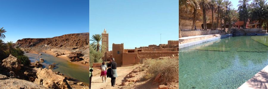 En esta séptima etapa, nos espera el último tramo de pista, concretamente la Pista Citroën. Esta pista era utilizada durante el Rally Dakar como bajada en dirección a Senegal. Se trata de una bonita pista que atraviesa el maravilloso oasis de Saf Saf entre las mosntañas, ríos de arena y piedras. Llegaremos a Boubuid y saldremos a una carretera que nos conducirá hasta nuestro destino Meski, concretamente al camping Fuente Azul, un oasis con un manantial natural que conduce su agua hasta una gran piscina donde podremos acampar con toda tranquilidad después de nuestra dura jornada.